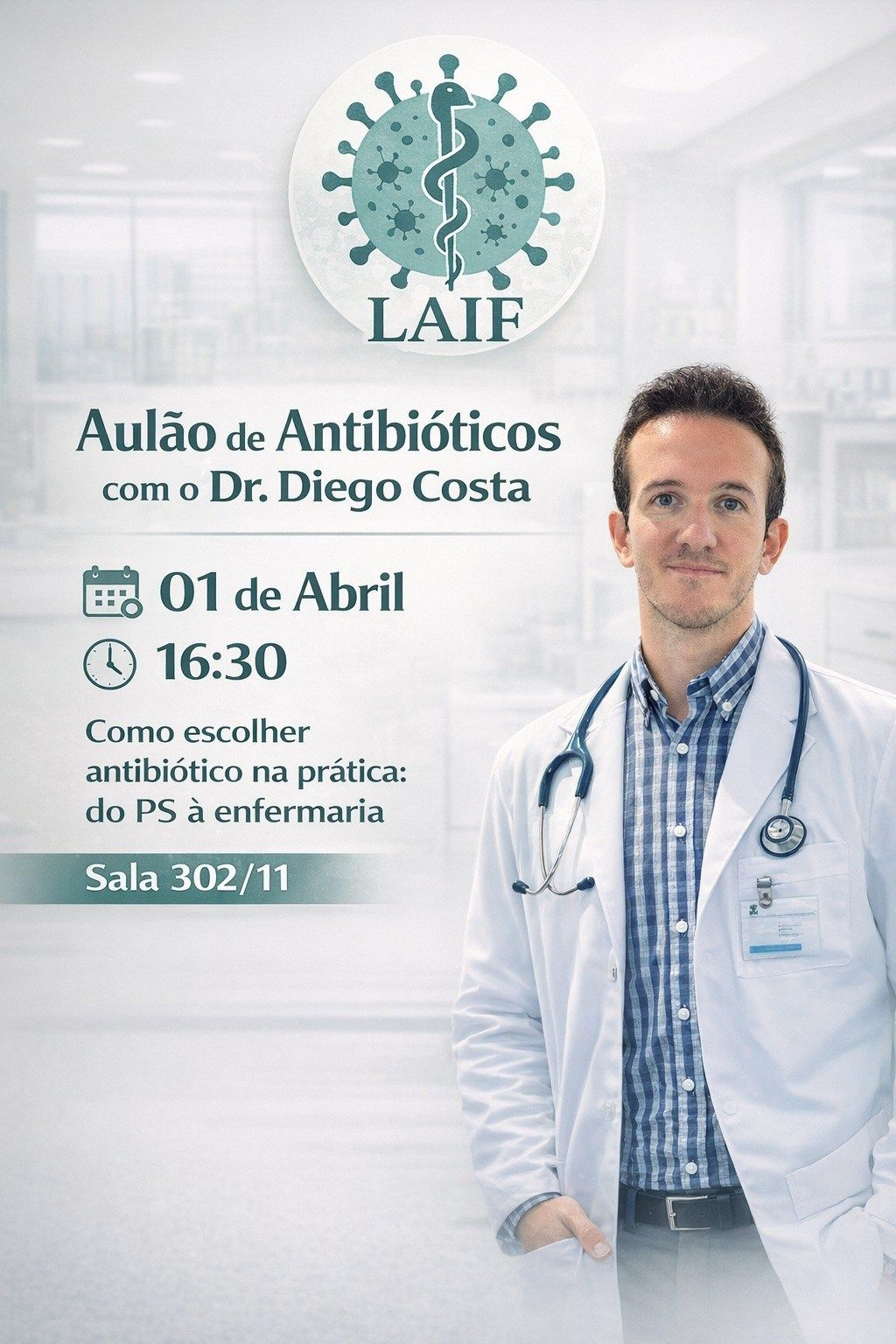 Com o título “Aulão de Antibióticos”, o encontro tem como proposta qualificar a tomada de decisão clínica em relação à prescrição antimicrobiana, um dos desafios mais recorrentes na prática médica contemporânea. A atividade se dirige tanto a estudantes de Medicina quanto a profissionais já formados que buscam atualização e maior segurança no manejo de infecções em diferentes contextos assistenciais.