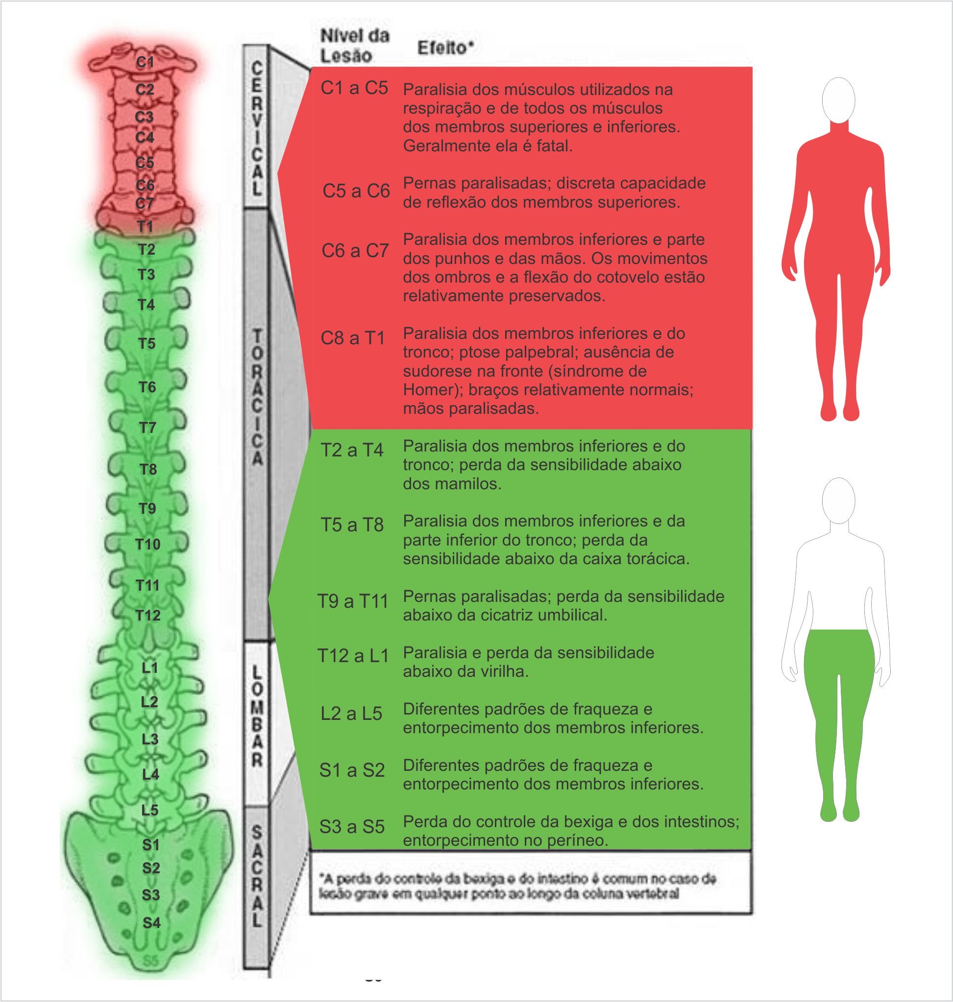 NAS LESÕES MEDULARES INCOMPLETAS, QUANDO ELAS OCORREM NA REGIÃO CERVICAL OU ATÉ A PRIMEIRA VÉRTEBRA TORÁCICA, O DIAGNÓSTICO SERÁ DE TETRAPARESIA, JÁ QUE TODOS OS QUATRO MEMBROS E O TRONCO FICAM PARCIALMENTE COMPROMETIDOS. ABAIXO DESTE NÍVEL, O DIAGNÓSTICO SERÁ DE PARAPARESIA, JÁ QUE AMBAS AS PERNAS FICAM PARCIALMENTE COMPROMETIDAS. |