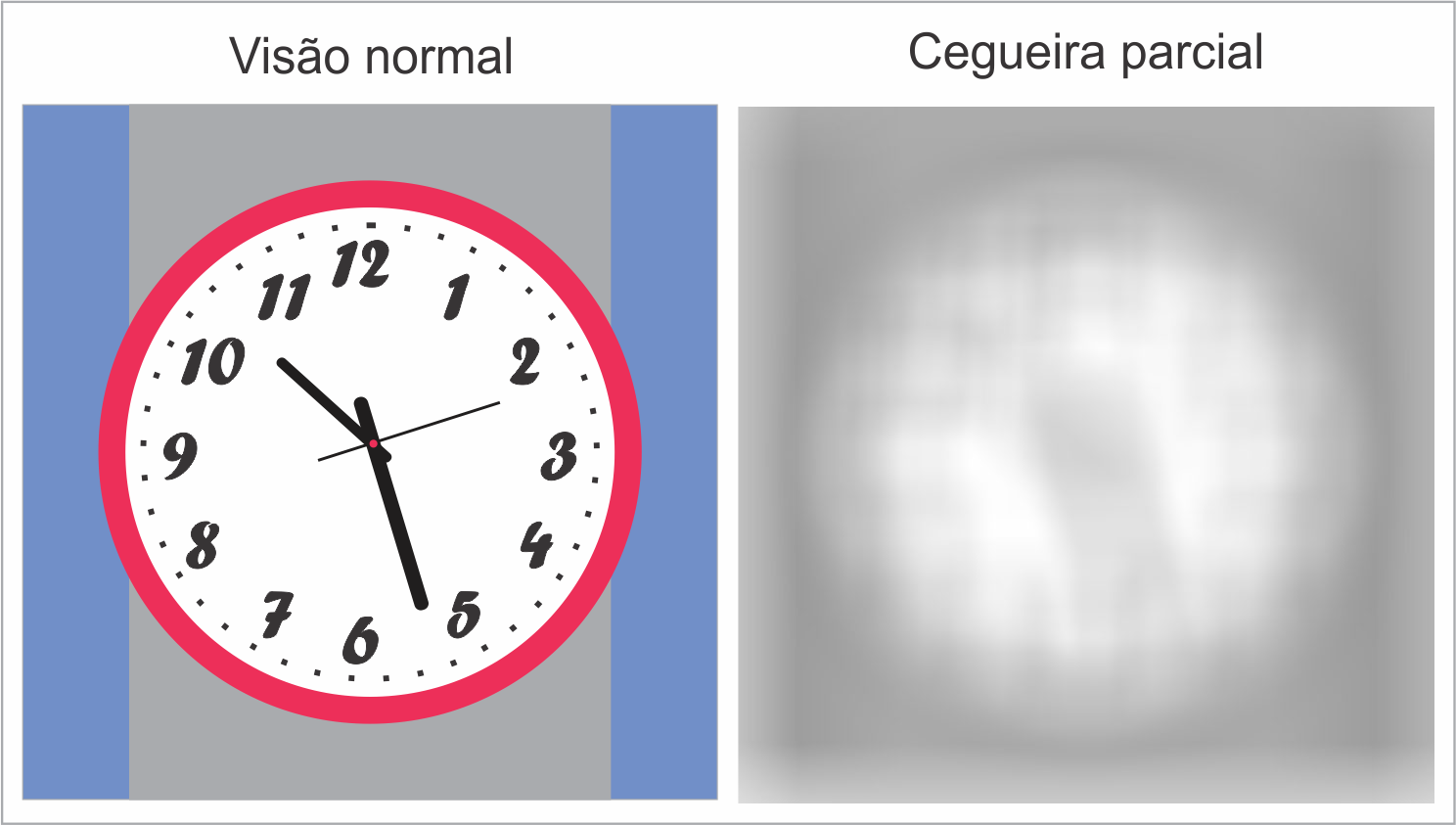 CHAMAMOS DE CEGUEIRA PARCIAL QUANDO A ACUIDADE VISUAL DE UMA PESSOA É IGUAL OU INFERIOR A 0.1, DEPOIS QUE FOR CORRIGIDA NOS DOIS OLHOS (COM ÓCULOS OU LENTES DE CONTATO), OU QUANDO O CAMPO VISUAL TUBULAR FICA RESTRITO A 20 GRAUS OU MENOS.