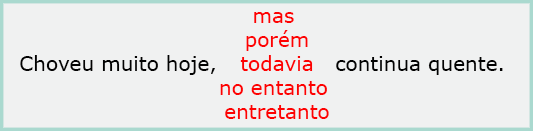 Perceba que, se alterarmos o conector, o sentido permanecerá o mesmo.