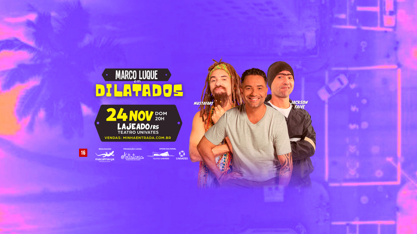 Com direção de Marco Luque e Guilherme Rocha, e produção da Macatranja, o ator, humorista e empresário sobe aos palcos do país e do mundo com o espetáculo “Dilatados”. Durante a apresentação, Luque traz Mustafary, um vegetariano irônico e controverso que prega a sustentabilidade do planeta, ama os animais, a natureza e, principalmente, seu cachorro “Serumaninho”, além de Jackson Faive, o motoboy paulistano mais famoso do Brasil, para trocar ideia sobre tudo de mais dilatado que vem ocorrendo nesta biosfera terrestre.