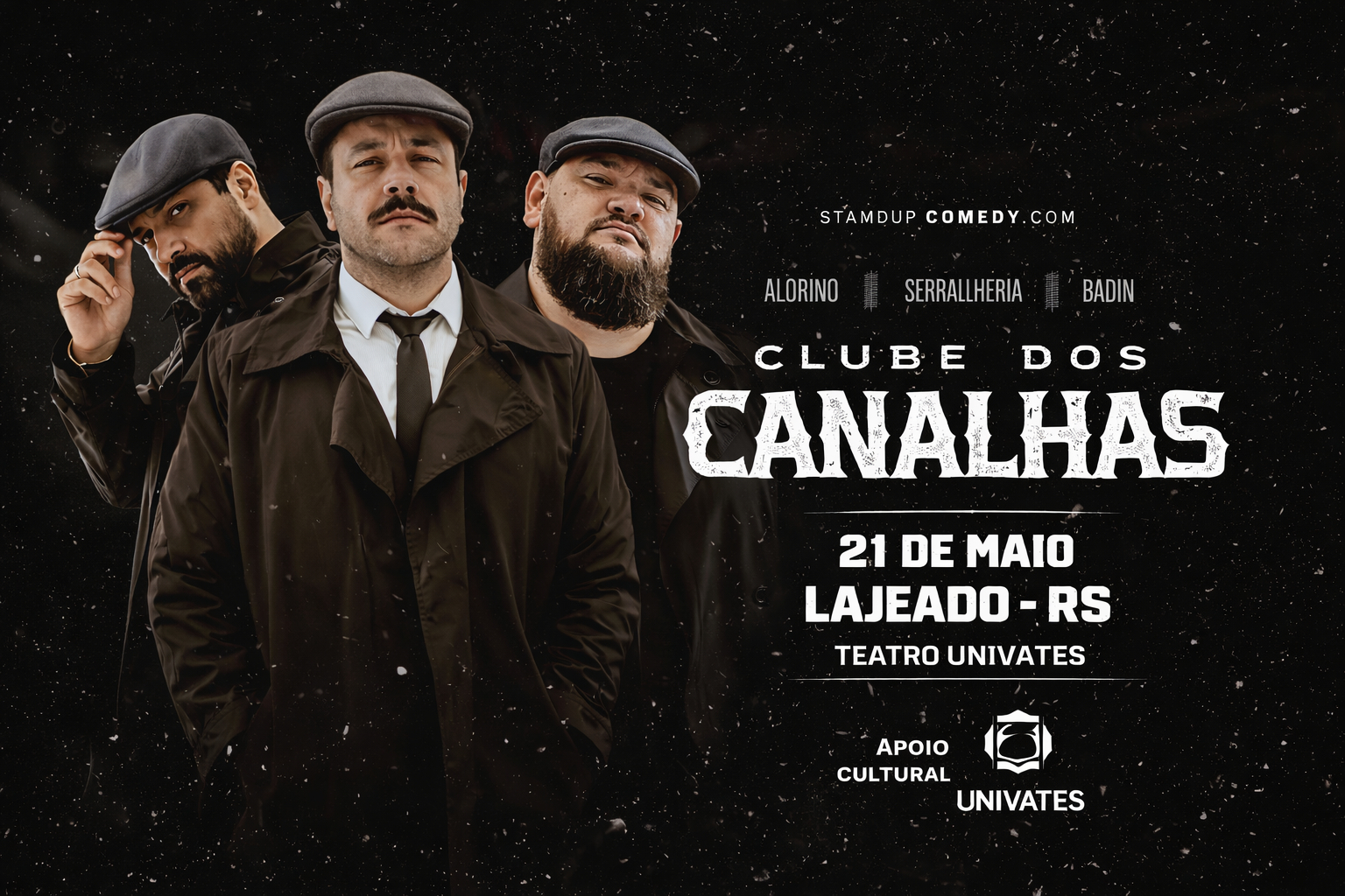 Clube dos Canalhas é um grupo de comédia formado pelos comediantes Alorino Junior, Rafael Aragão e Serginho Lacerda. Um show onde são abordados vários temas do cotidiano da vida, repleto de improvisos, onde tudo pode acontecer... Entrevistas, declarações de amor, pedidos de casamentos, e é claro muitas gargalhadas. Se prepare para um show de comédia único onde o Clube dos Canalhas vai fazer de tudo para que você saia com sua barriga doendo de tanta risada!
