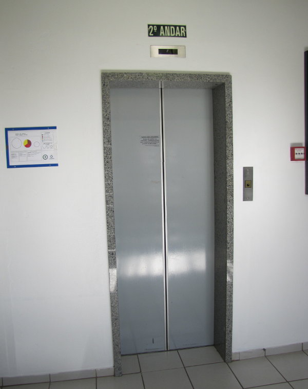 O prédio 8 possui elevador em todos os 4 andares. O mesmo localiza-se no corredor à esquerda de quem acessa o prédio saindo do Atendimento ao Aluno.