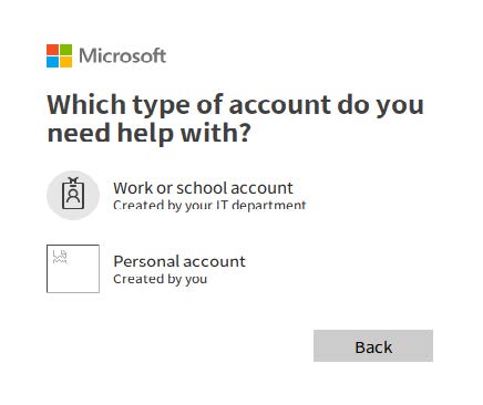 No passo a seguir selecione o tipo de conta que deseja recuperar a senha. Você deve selecionar a opção “Work or School Account”.